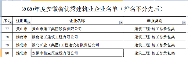 近日,安徽省住建廳傳來(lái)喜訊,2021年度安徽省優(yōu)秀建筑業(yè)企業(yè)評(píng)選結(jié)果已出爐,黃山市建工集團(tuán)榮獲2020年度安徽省優(yōu)秀建筑業(yè)企業(yè)---建筑工程施工總承包類優(yōu)秀建筑業(yè)企業(yè)。