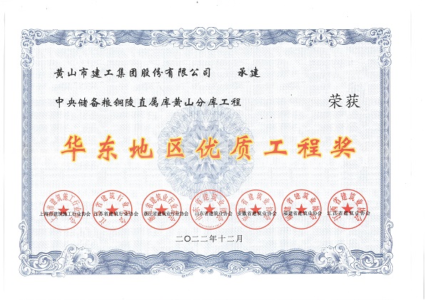 由黃山建工集團股份有限公司承建的“中央儲備糧銅陵直屬庫黃山分庫工程”榮獲華東地區(qū)各省建筑業(yè)協(xié)會聯(lián)合頒發(fā)的“華東地區(qū)優(yōu)質工程獎”。