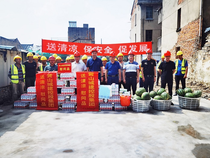 烈日炎炎,氣溫居高不下。為保障項(xiàng)目職工安全健康權(quán)益,確保項(xiàng)目安全生產(chǎn)平穩(wěn)推進(jìn),8月10日上午,黃山城投城建控股有限公司總經(jīng)理汪國(guó)文等一行赴寧國(guó)市河瀝文化街區(qū)EPC項(xiàng)目工地開(kāi)展走訪調(diào)研暨“夏送清涼”慰問(wèn)活動(dòng)。黃山建工集團(tuán)股份有限公司董事長(zhǎng)項(xiàng)端陽(yáng)、總經(jīng)理葉金發(fā)、副總經(jīng)理吳學(xué)武陪同調(diào)研慰問(wèn)。