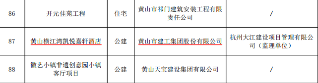 近日,黃山市住房和城鄉(xiāng)建設(shè)局公布了2025年度黃山市建設(shè)工程“迎客松杯”獎(jiǎng)獲獎(jiǎng)名單。黃山建工集團(tuán)承建的安徽黃山省級(jí)糧食儲(chǔ)備庫倉庫擴(kuò)建9#平房倉項(xiàng)目、黃山區(qū)2019-15地塊6#樓項(xiàng)目及黃山橫江灣凱悅嘉軒酒店項(xiàng)目成功斬獲三項(xiàng)“迎客松杯”獎(jiǎng)。