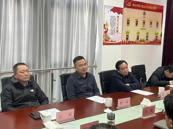 2月14日下午,黃山市住房和城鄉(xiāng)建設(shè)局黨組書記、局長張凡帶隊(duì)蒞臨黃山建工集團(tuán),開展新春走訪調(diào)研活動(dòng),為企業(yè)送祝福、問需求、解難題、鼓干勁。市住建局三級(jí)調(diào)研員程鋼,黨組成員、市建筑管理處主任汪軍,辦公室、建管科有關(guān)負(fù)責(zé)同志陪同調(diào)研。 黃山建工集團(tuán)董事長汪輝、副董事長葉金發(fā)、總經(jīng)理方哲源及集團(tuán)領(lǐng)導(dǎo)班子成員參加調(diào)研座談會(huì)。