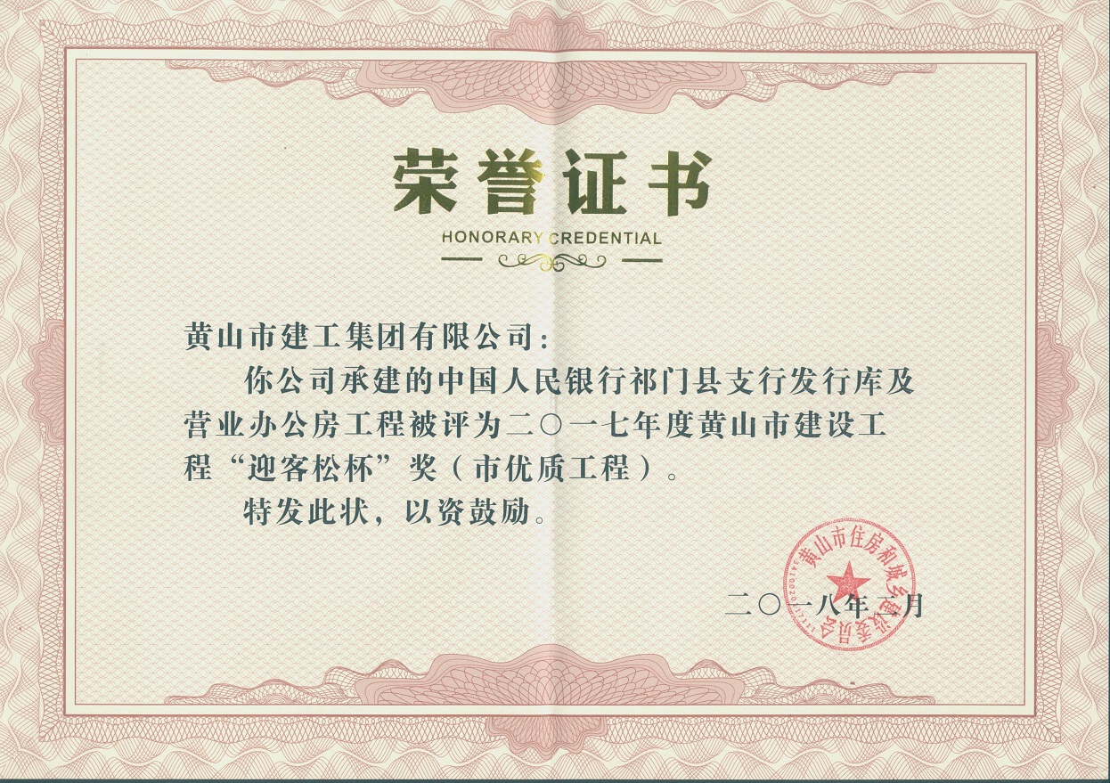 2018年度黃山市建設(shè)工程優(yōu)質(zhì)工程獎